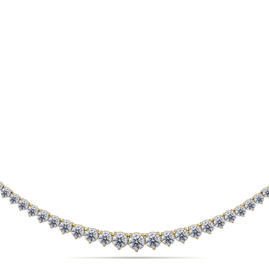 This luxurious diamond tennis necklace features lab round diamonds that grow toward the 1ct diamond center stone, creating a graceful silhouette. The prong setting enhances each diamond's brilliance. Available in 14k gold, it showcases Lola's Fine Jewellery's craftsmanship. Elevate your elegance with this timeless design and discover sophistication and sparkle.